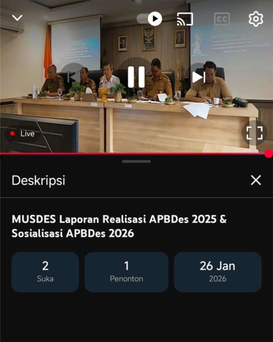 Sebagai bentuk dukungan terhadap keterbukaan informasi publik, pelaksanaan MUSDes ini juga diselenggarakan secara live streaming melalui platform YouTube, sehingga masyarakat dapat mengikuti jalannya musyawarah secara terbuka dan transparan. link sebagai berikut : https://www.youtube.com/watch?v=MSngtIVRBZo