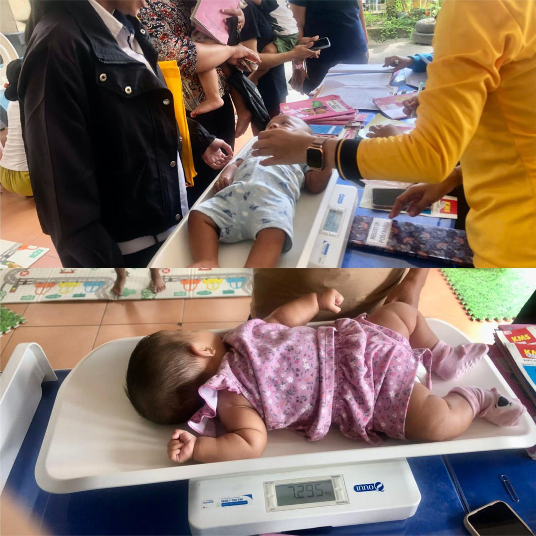 Dalam kegiatan ini dilakukan penimbangan berat badan, pengukuran tinggi/panjang badan, pemantauan gizi, serta penyuluhan kesehatan kepada para orang tua.